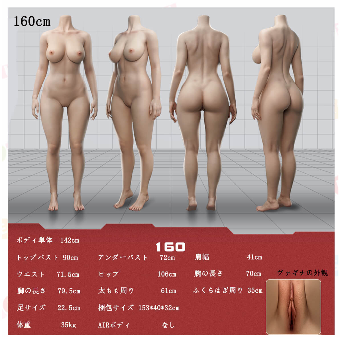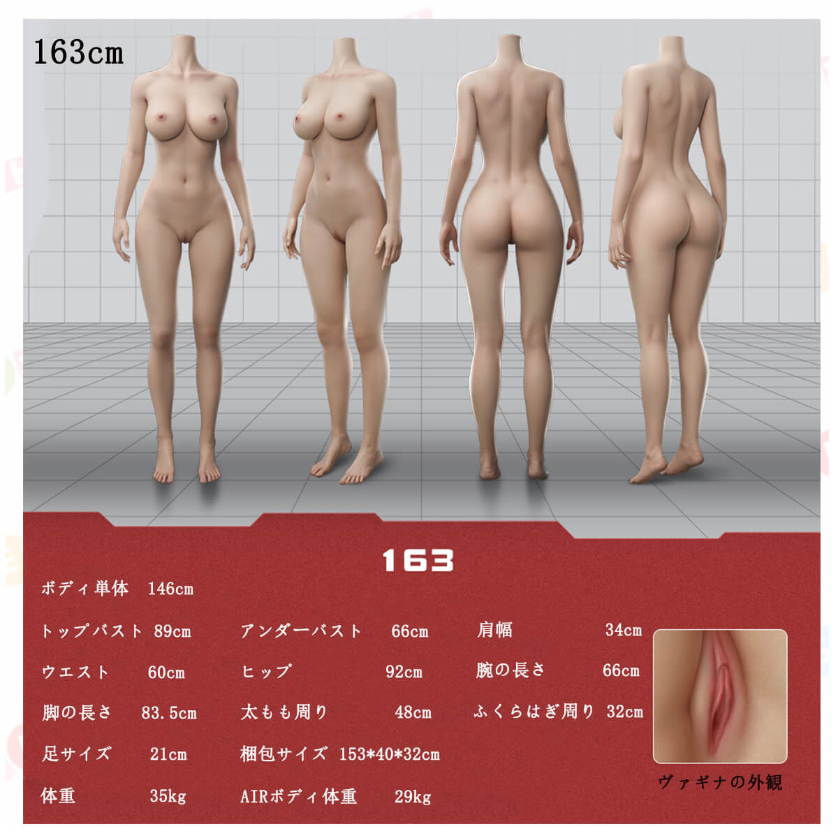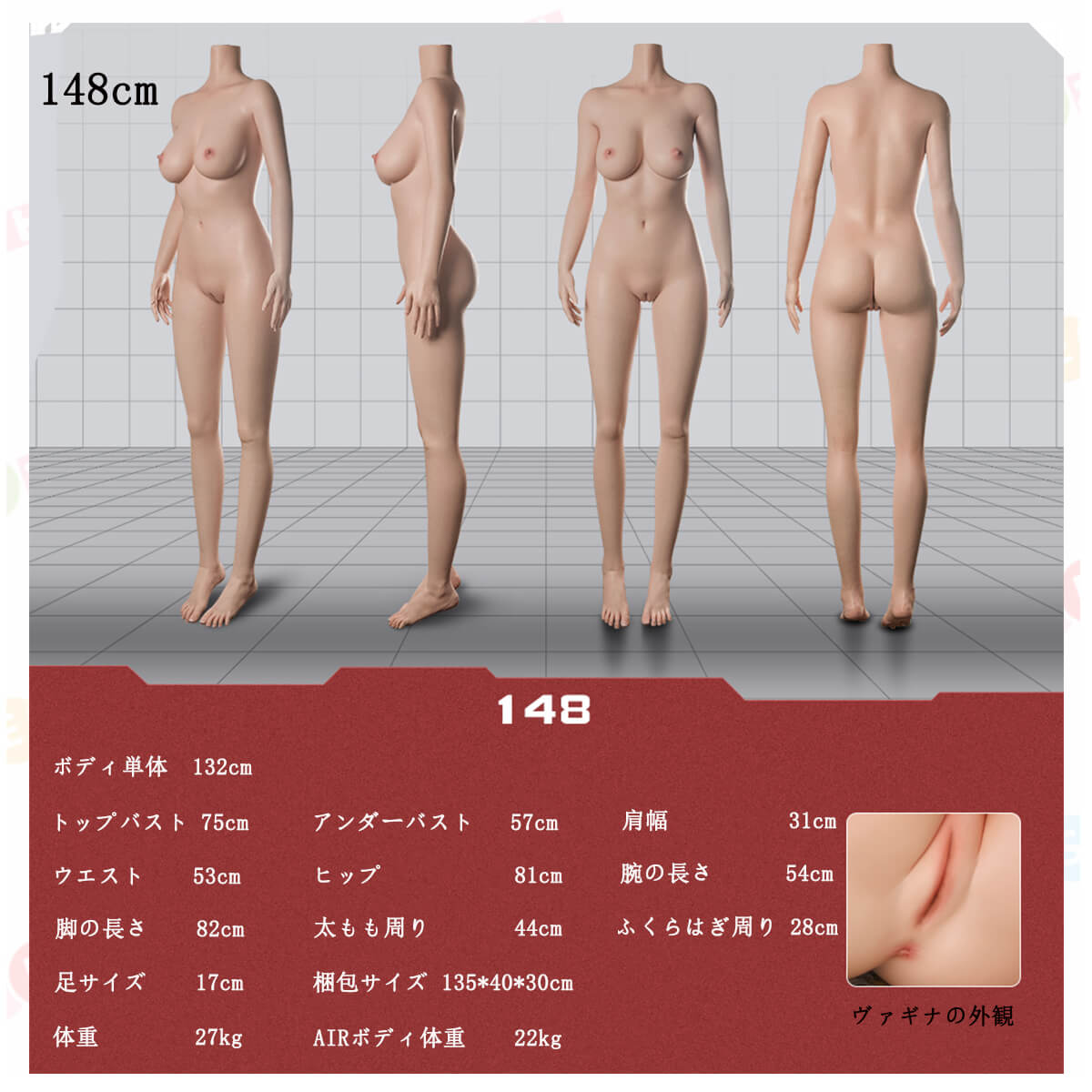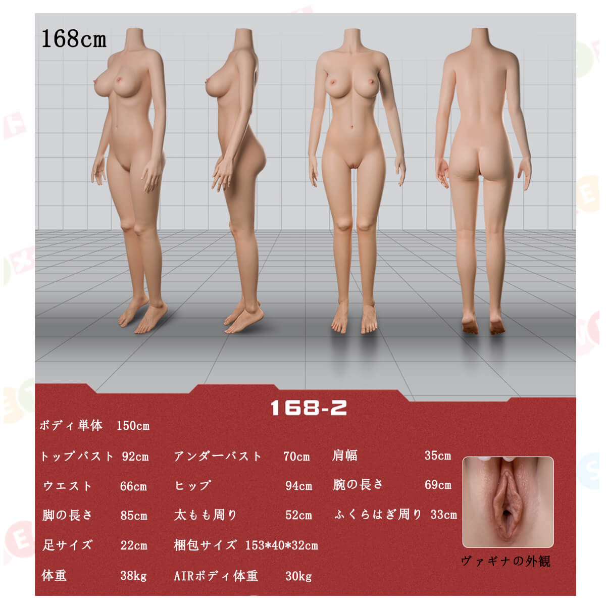 シリコンボディ: 148cm、160cm、163cm、168cm ヴァギナタイプ①、168cm ヴァギナタイプ② |