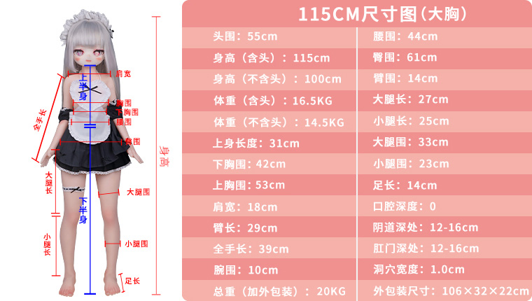 - 製品名: 魔族人形 MOZU DOLL 薄荷 アニメ 美少女 セックスドール 115cm バスト大 ビニールヘッド+TPEボディ